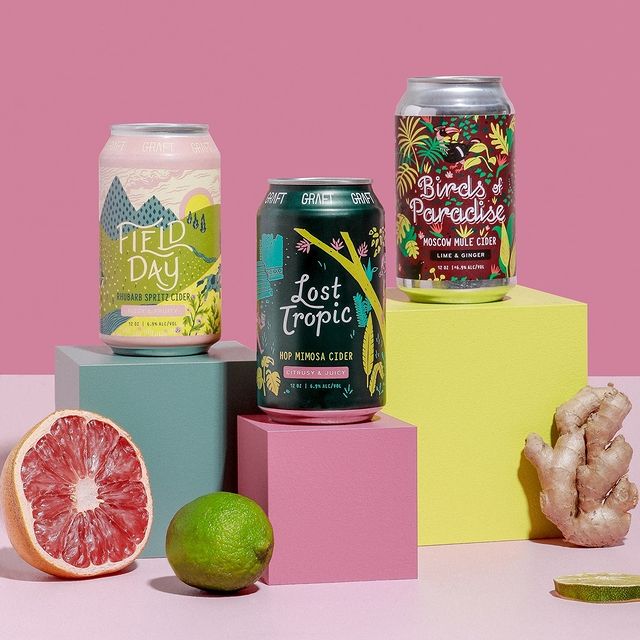 Graft’s lineup is hallmarked by their four unique flagship ciders: Farm Flor, Lost Tropic, Field Day, and Birds of Paradise. These year-round favorites are joined by seasonals from Graft’s Green Planet Cider Series, which donates 10% of profits to non-profit agencies that protect and restore the earth and its inhabitants. But that’s not all – for those seeking even more adventure, Graft’s Book of Nomad rotational series is full of ciders that push conventional boundaries, resulting in one-off cider styles that are unmistakably Graft.